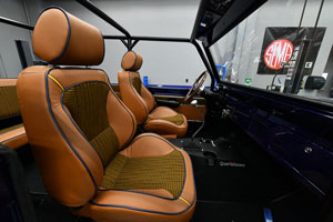 Next came work on the exterior, with lighting and trim provided by Drake Automotive Group. Lund International donated fender flares, and AMP Research provided powersteps. BCR Custom Wiring installed the wiring.