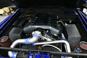With a bigger power unit came a custom driveshaft rated to handle the output. Wilwood installed new brakes and contributed a plan to optimize the rear brake lines. Summit Racing provided an original-spec fuel tank. New wheels from American Racing Wheels and 35-in. tires from Toyo Tires were also added. MagnaFlow dropped by the SEMA Garage to create and install a one-off exhaust system.