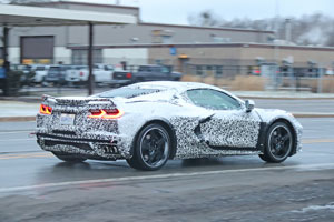 Corvette C8 Plug-In HybridThis upcoming Corvette C8 plug-in hybrid contains an orange charging harness protruding from beneath the front cargo cover. Other than those cables, the exterior does not seem to contain any other visible differences from the Corvette C8 with the Z51 package. The C8 PHEV is expected to be analogous to the current Stingray model but with hybridized power. It’s currently unclear what the powertrain will look like (it sounded like a V6), though the electrified hardware is expected to aid in performance rather than fuel economy. It will launch either in late 2020 or early 2021. | ![]() |