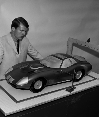The Type 65, like the championship-winning Shelby Daytona Coupes that came before it, was designed by Peter Brock, who was photographed for Sports Car Graphic magazine in February 1965 with a scale clay model of the car. Brock called the Type 65 Shelby’s “back-up plan in case he didn’t get the hoped-for GT40 program.”