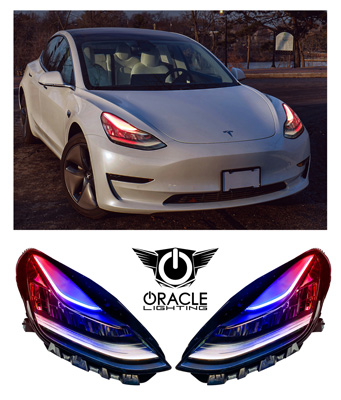 Oracle Lighting Oracle Lighting announces the release of the ColorShift DRL for the ’17–’20 Tesla Model 3. The modules use LEDs and other components. The boards are designed to be compatible with the factory system and should not cause any fault codes to appear when installed. The kit includes the complete set of ColorShift replacement DRLS, choice of ColorShift controller, and installation wiring kit. Information: www.oraclelights.com or 800-407-5776. |