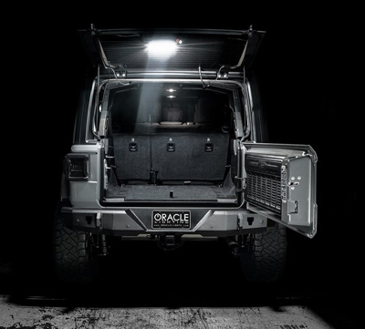 Oracle Lighting Oracle Lighting has released its new Jeep Wrangler JL LED cargo light module. The new LED light modules are designed for ’18–’20 Jeep Wrangler JL models. The cargo LED module’s lights can be turned on and off with flush switches located on a panel. The dual white LED cargo light function provides illumination and the added feature of an emergency flasher. Information: www.oraclelights.com or 800-407-5776. |