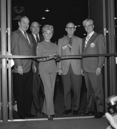 The VIPs chosen for the ceremonial ribbon cutting to open the 1971 SEMA Show represented the past, present and future of automotive performance. Doing the honors with her “shifting hand,” as Hot Rod Industry News (HRIN) described it, was drag racer Shirley Shahan. She was joined by (from left) Willie Garner, Don Jensen, Doug Toms and Roy Richter.