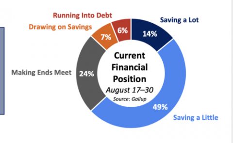 “This is completely opposite of what you would think based on what the media was saying,” Cheng said. “Something like 63% of people are saving at least a little money, and that sometimes means they’re not spending money, so that’s something we want to keep an eye on. It might just be a reflection of thinking the economy right now is not the greatest and putting a little money aside, but the fact that people have money is a positive indicator.”
