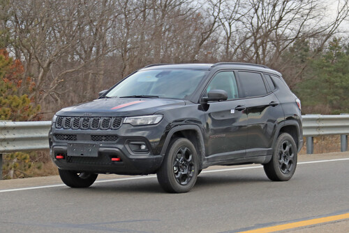 Here’s a first look at the ’22 Jeep Compass Trailhawk. Up front are revised headlamps with a new shape and an LED strip that has been moved to the top. The rest of the front fascia gets a complete revision with a grille that stands more upright, revised foglights, and additional plastic mesh under the grille. Around back, the minimal changes are to the taillights and the removal of the rear tow hook. Behind a new steering wheel is an optional 10.1-in. digital cluster. The infotainment should run on FCA’s latest Uconnect 5 system. Power is still expected from the 2.4L naturally aspirated four-cylinder that’s mated to a nine-speed automatic.