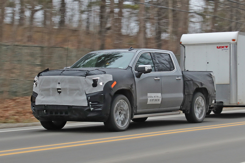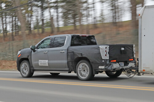’22 GMC Sierra Denali 1500Here’s the upcoming refresh to the GMC Sierra Denali 1500, towing a trailer. Expected to launch for the ’22 model year, the refresh will update the various perceived shortcomings of the GMC Sierra that was introduced for the ’19 model year. Noteworthy items to expect include new front and rear fasciae, an all-new cockpit with a large center screen, an all-digital gauge cluster, and Super Cruise on the range-topping Denali model. Expect an official debut in mid-2021.