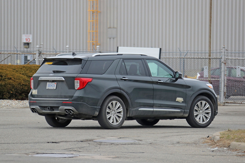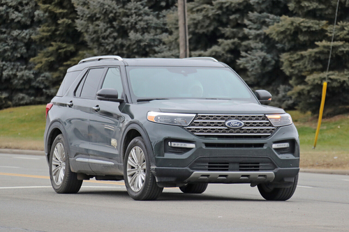’22 Ford Explorer King RanchIn 2020, website Ford Authority reported that Ford would launch a King Ranch Explorer for the ’21 model year. Here’s a first look. Though the vehicle has its side badges covered, the “King Ranch” badge can be seen beneath masking tape. The wheels appear to be similar in design to the ones used on the Limited, but what’s different is a set of four-tipped exhaust outlets that are present out back, suggesting the use of the EcoBoost 3.0L V6 engine borrowed from either the Platinum or ST (365 hp or 400 hp). This Explorer will likely differentiate itself by having more standard features and creature comforts, particularly inside the cabin. Expect a likely on-sale date this fall.