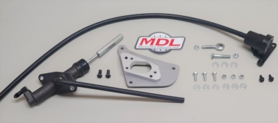 Uses OE-style master cylinder and custom plates to achieve a direct-connect from firewall to pedal. Adjustable pedal height to achieve comfort level for clutch re-engagement from the carpet. It locates on a single existing fastener hole; drill two more small holes, trim a plate, install fasteners, hooks up and bleed, and done! Steering column may be removed for convenience but not mandatory.