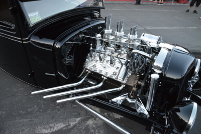 The Model A’s wheelbase was stretched 7 in., its roofline was chopped 41/2 in., and its bodywork was slightly channeled to match the custom Roadster Shop chassis.
