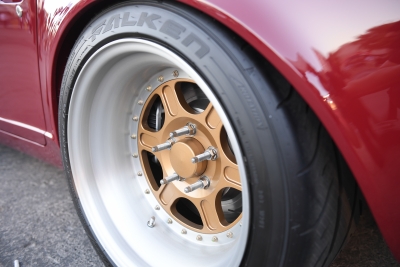 The Falken tires are mounted to trick Bogart Racing wheels, which were sourced from a customer who refinished them before Frazier treated them to a bronze paint scheme.