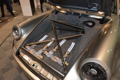 The motive power flows to a set of Michelin tires wrapped around Rotiform custom center-lock wheels (“a world debut of a new design”) that in turn are halted by a Stoptech Level 3 big-brake kit. To handle the suspension duties, the Porsche uses a KW Suspension “Club Sport” coil-over setup that incorporates components from Tarrett Engineering.