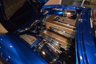 Nestled in an all-custom engine bay, the LSX engine is topped by a Magnuson supercharger and backed by a TCI six-speed transmission.