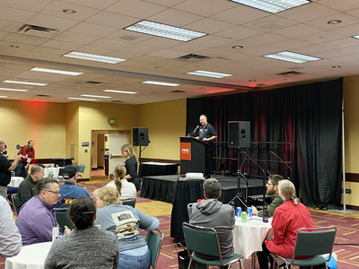SEMA Board Chair-Elect Kyle Fickler delivered a heartwarming tribute at the MPMC Performance Industry Reception at PRI.
