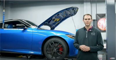 Nissan brought the ’23 Z into SEMA Garage for a measuring session. We put the vehicle on a lift and @Nissan USA Product Planning Manager Sam Cates highlighted features of the car.