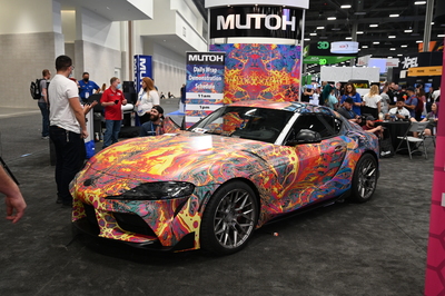 While not quite as prevalent as they were a few years ago, vinyl wraps such as this example at the Mutoh booth at the 2021 SEMA Show are still popular, as they allow vehicle owners to apply a personal protective touch to their vehicles at a user-friendly price.