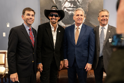 Richard Petty’s bipartisan visits included a meeting at the U.S. Capitol with House Minority Leader Kevin McCarthy (R-CA, second right). They are flanked here by SEMA Board of Directors member Ted Wentz III (left) and SEMA President and CEO Mike Spagnola (right).