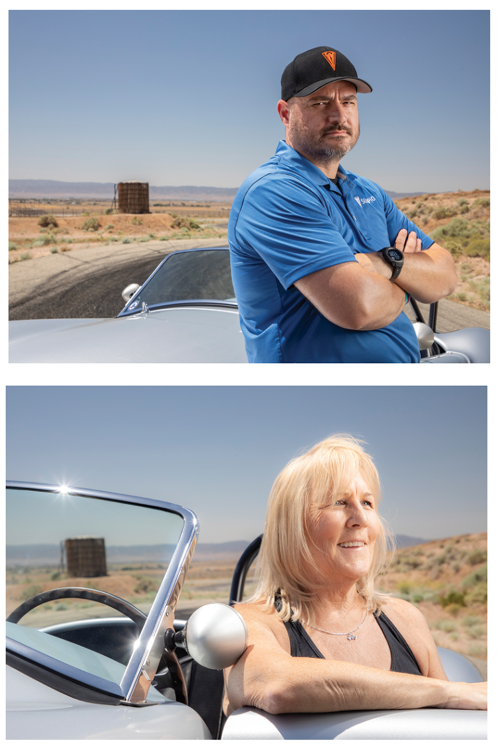 Karen Salvaggio: Scorpion came about from a partnership of two people who love driving this type of car. One of them is, like, an EV genius guy, and then other is a 35-year veteran racer. The car is a Factory Five Mk4 roadster replica of the ’65 Shelby Cobra. We’re geeky people, but we love cars, and we love driving them fast. So the idea was, let’s take something that we know well, and Bill particularly is in the EV lane of things and very, very talented in all things electrical.