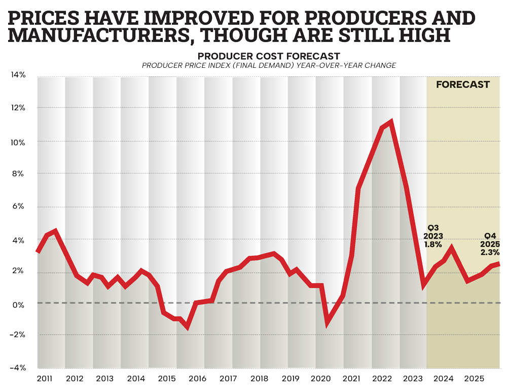 The report discerns that, overall, there are many positives at play in the current U.S. economy, albeit tempered by a few negatives. The nation saw strength in employment and spending numbers along with slowing inflation coming into 2024. Expectations are that for the first half of the year the economy will continue a slow climb before ramping up in the later half of 2024 and into 2025.
