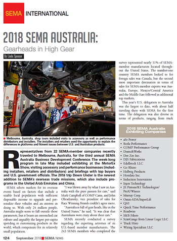 More information by contacting SEMA’s International Director Linda Spencer at lindas@sema.org.